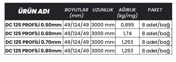 Duvar C 125 Profili, alçı levha bölme duvar yapımında kurulan metal konstrüksiyon sıcak daldırma galvanizli çelikten üretilen taşıyıcı elemanlarıdır.